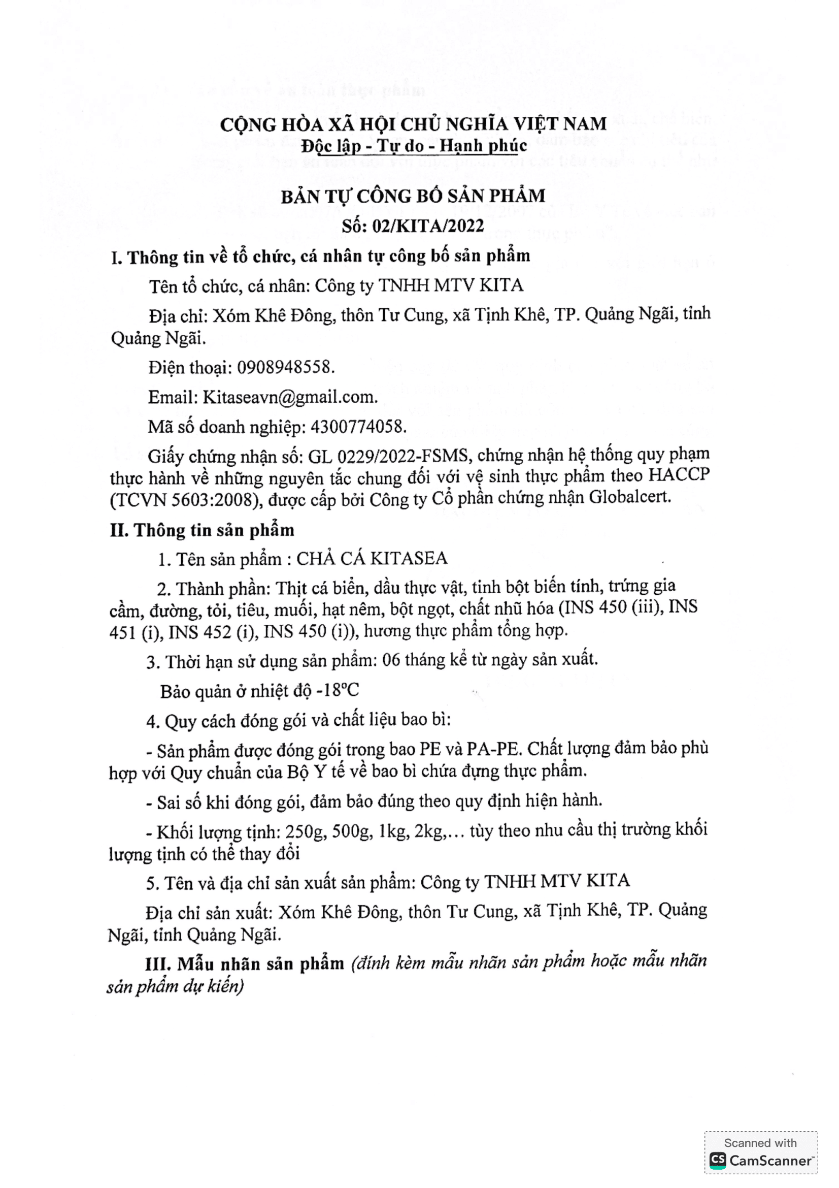 - Chả mực Kita Quảng Ngãi với công thức đặc biệt đem đến cho người tiêu dùng sản phẩm Chả Mực thơm ngon có hương vị đặc trưng, đảm bảo ăn 1 lần nhớ mãi.