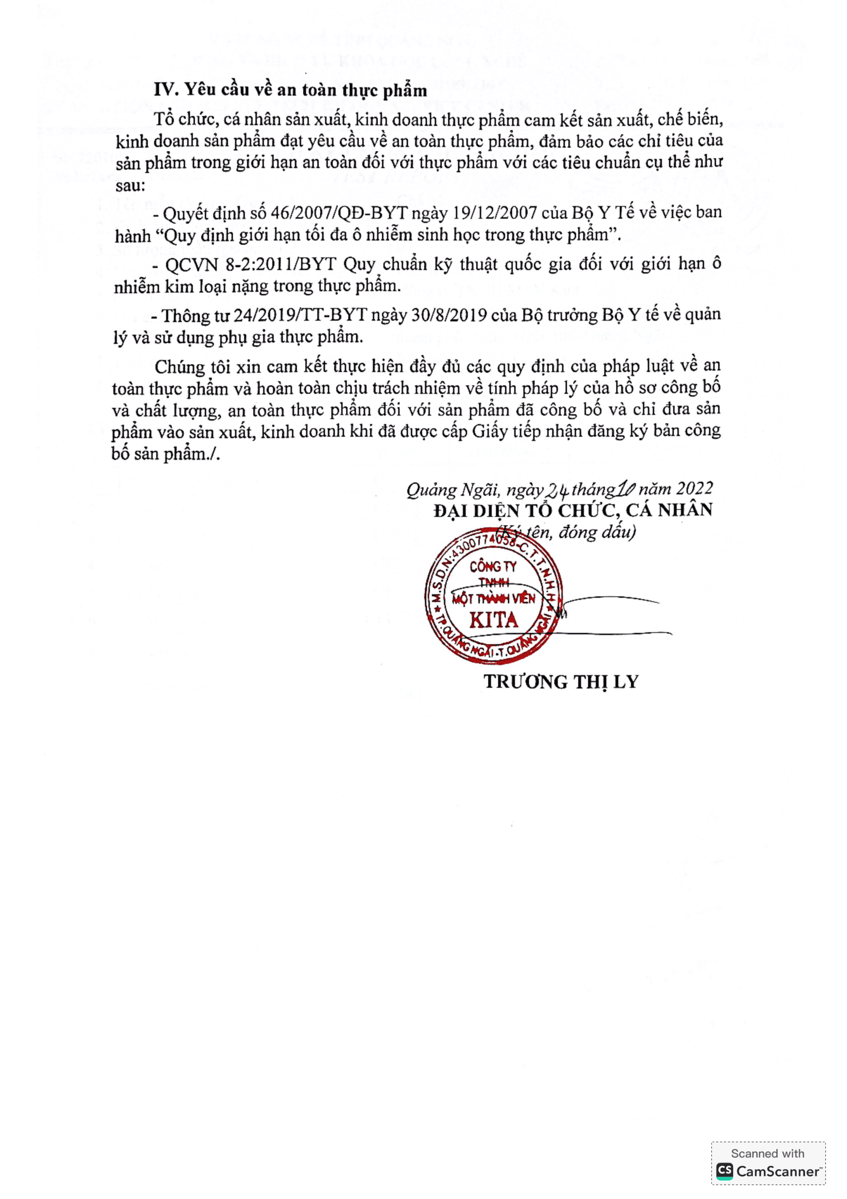 - Chả mực Kita được chế biến từ mực nang nguyên chất tươi ngon của vùng biển Quảng Ngãi như Lý Sơn, Tịnh Kỳ, Tịnh Khê, Bình Châu, …